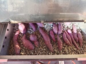 シルクスイートと、地元新野産の紅はるかの石焼き芋の販売をそば蔵にて販売しております。